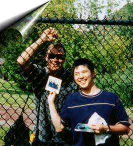 But soon after the happening, Bruce came out through the gate with J.V. Collier. So I ran up to him again; called out, "Bruce! Bruce!" "Hey, Taka," replied Bruce. Yup! Surprisingly, Bruce already remembered my name!! So I said. "I'd like to ask you to have my picture taken with you again." But nobody was there except for Bruce, J.V. and me. So Bruce and I tried to take a picture of us by ourselves at first. But we asked J.V. to take a picture of us; he was willing to do it.